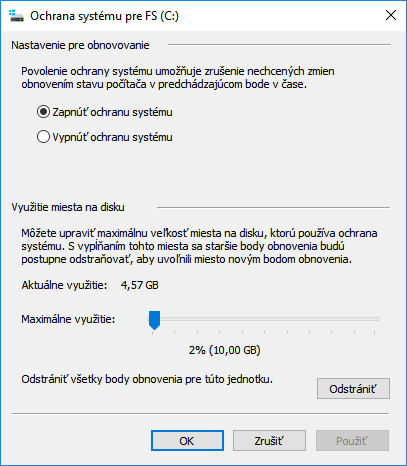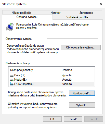Ak chcete túto funkciu zakázať, môžete namiesto posunu jazdca kliknúť na možnosť „Vypnúť ochranu systému“. Tento krok vám však dôrazne neodporúčame, pretože vyraďujete jednu z výborných opravných možností systému, ktorá vám prináša iba osoh.