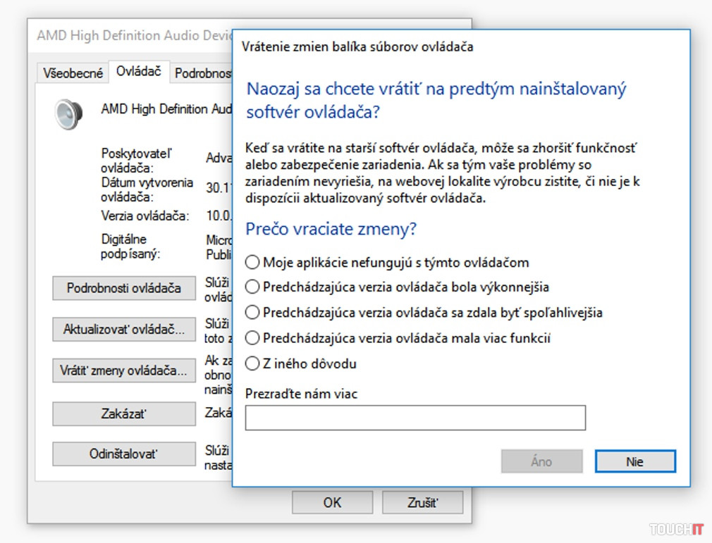 Váš problém ale bude skôr spôsobovať aktualizácia ovládača touchpadu, ktorý Microsoftu poskytol jeho výrobca. V takýchto prípadoch kliknite pravým tlačidlom myši na ikonu Windows v ľavom dolnom rohu obrazovky a zo špeciálneho menu, ktoré sa vysunie, vyberte Správcu zariadení. V otvorenom okne rozbaľte ponuku Myši a ostatné ukazovacie zariadenia (alebo iný hardvér, ktorého sa problém týka) a otvorte dvojklikom položku patriacu touchpadu. V otvorenom okne sa prepnite na záložku Ovládač, kde nájdete tlačidlo Vrátiť zmeny ovládača, ktoré vás vráti k jeho predchádzajúcej verzii.