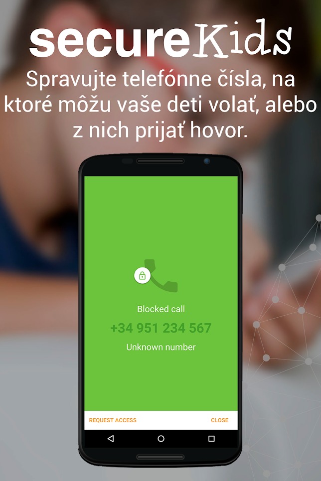 Blokovanie hovoru z neznámeho čísla programom SecureKids, Zdroj. SecureKids
