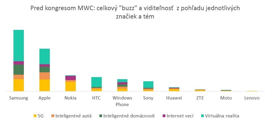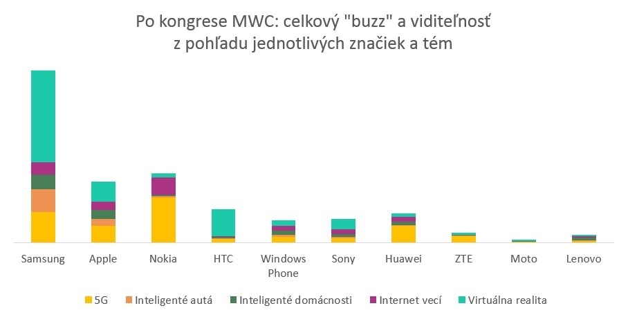 Údaje analýzy jasne ukazujú, že víťazom v súvislosti s komunikáciou a viditeľnosťou značky počas jedného z najprestížnejších podujatí v oblasti mobilných technológií MWC 2016 sa stal Samsung. V prípade ostatných značiek, ktoré začali na nízkej úrovni viditeľnosti s minimálnou aktivitou, v závere MWC päť značiek skutočne maximalizovalo svoj dosah z pohľadu asociácie značky v rámci spomínaných piatich kľúčových tém, a to Apple (30-násobné zvýšenie), ZTE (21-násobné zvýšenie), Windows Phone (53-násobné zvýšenie), Lenovo (43-násobné zvýšenie) a Moto (27-násobné zvýšenie).