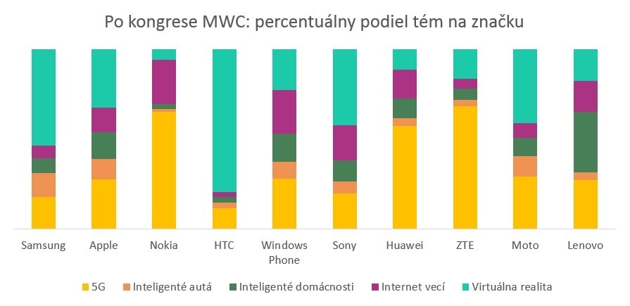 Z post kongresovej analýzy zasa vyplýva, že okrem značiek Apple a Nokia sa percentuálny podiel jednotlivých tém významne zmenil pre väčšinu značiek.