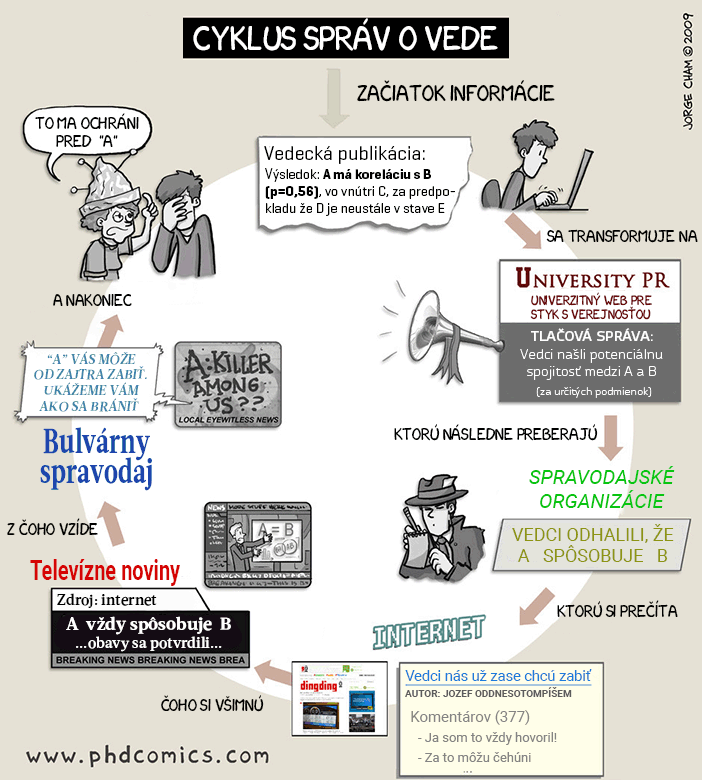 Ak sa následne témy ujme autor všeobecného spravodajstva, pričom vytvára len krátku novinku, z hľadiska času nemôžete očakávať, že bude čítať samotnú štúdiu. Správu vytvorí len zo zjednodušeného popisu/tlačovej správy, pričom neúprosnosť dnešného webu si vyžiada prehnaný nadpis a ešte väčšie zveličenie danej informácie, pretože inak sa daná správa nebude čítať a nezaplatí sa ani tá jedna hodina investovaná do jej vytvárania.