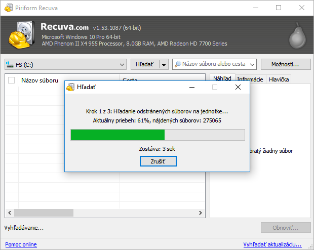 Nástroj Recuva je možné použiť na obnovu z microSD kariet