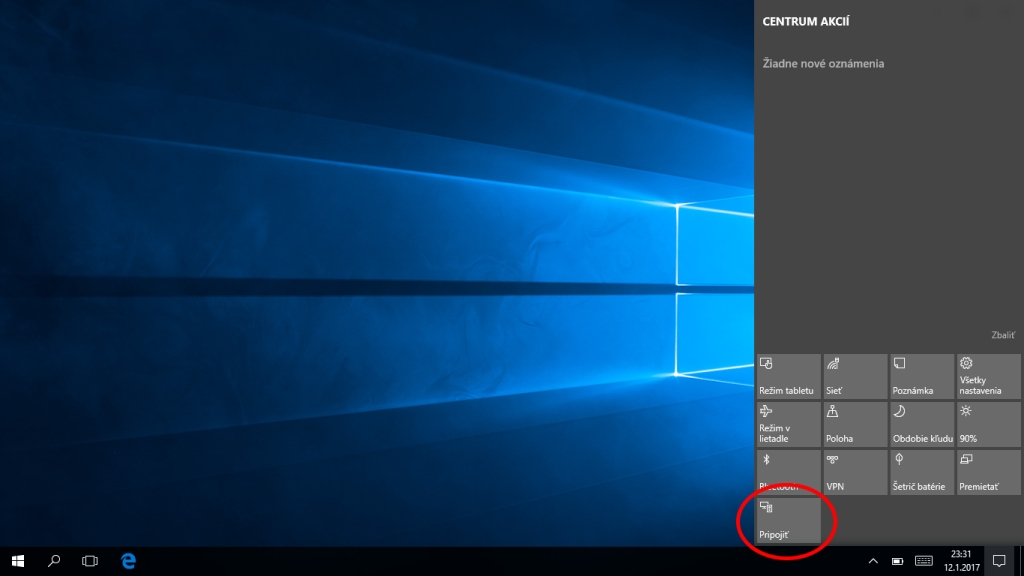 Ak naopak chcete z daného zariadenia obraz vysielať, tak v Centre akcií sa po kliknutí na Pripojenie zobrazia zariadenia v okolí, ktoré obraz vysielaný cez Miracast sú schopné prijať. Následne už len na zariadenie stačí kliknúť a prenos obrazu sa začne. Ak napríklad váš televízor Miracastové spojenie nepodporuje, je možné do neho pripojiť prijímač, ktorý sa zasúva do jeho HDMI portu (a takisto do USB, ktoré sprostredkováva napájanie). Takýmto zariadením je napríklad Microsoft Wireless Display Adapter, ktorý v aktuálnej verzii V2 kúpite za 50 eur.