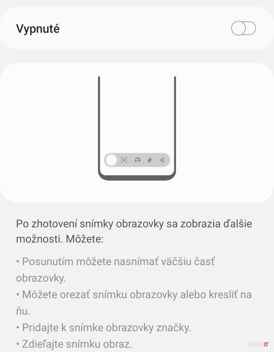 To platí aj pre vytváranie snímok obrazovky z telefónu. Stlačením tlačidla Vypnúť a Hlasitosť nadol spravíte snímok obrazovky. Po tomto úkone sa ale v spodnej časti obrazovky zobrazí panel poskytujúci ďalšie možnosti. Sám sa skryje, no chvíľu to trvá. Toto sa dá zmeniť.
