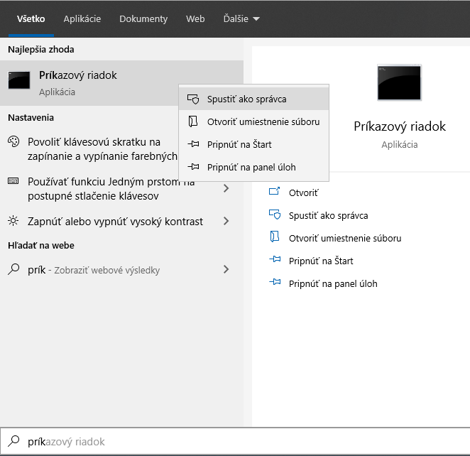 Spustite príkazový riadok v režime administrátora