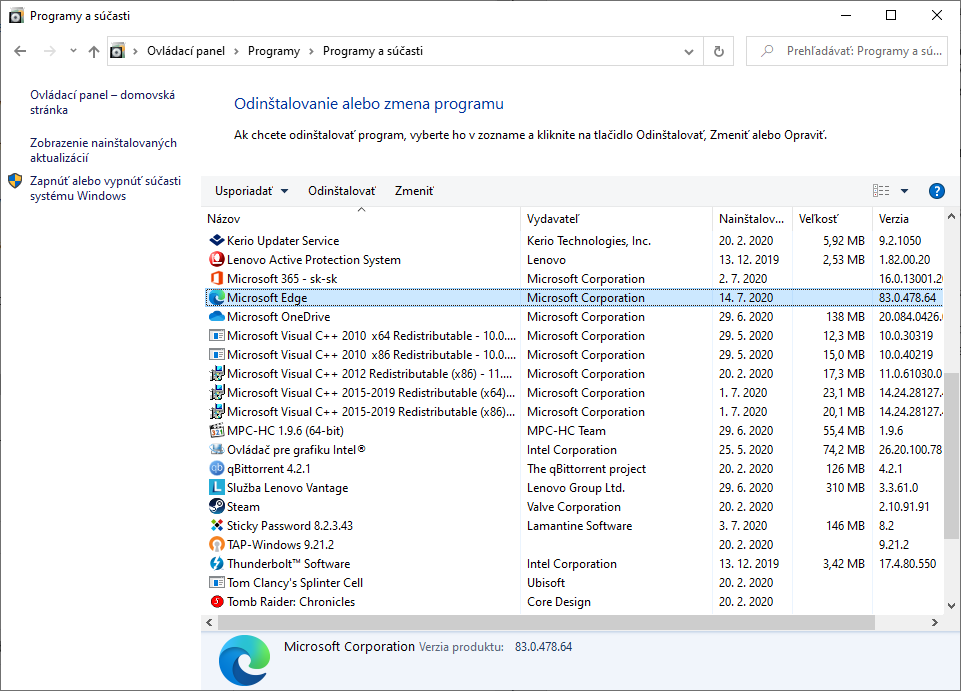 C:Program Files (x86)MicrosoftEdgeApplication83.0.478.58Installer a stlačte Enter Následne zadajte: setup.exe –uninstall –system-level –verbose-logging –force-uninstall Ak sa proces nepodaril, pravdepodobne máte Edge pridaný ako samostatnú inštaláciu a jeho odinštalovanie vám bude fungovať v Ovládacom paneli.