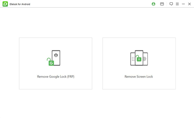 • Nainštalujte si iDelock do počítača a vyberte možnosť Odstrániť Google Lock (FRP). Pripojte svoje zariadenie Android k počítaču.
