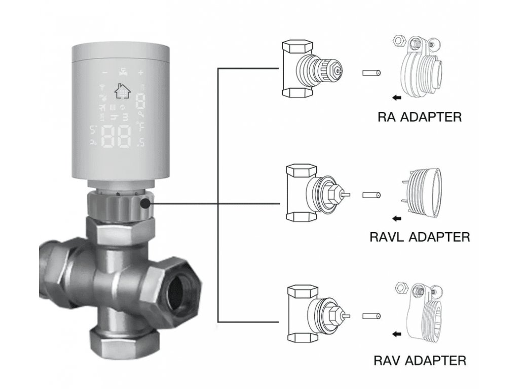 Z pohľadu optimalizácie kúrenia je ideálne túto riadiacu jednotku spárovať s inteligentnými radiátorovými hlavicami značky Moes, ktoré sa ľahko inštalujú (viacero adaptérov v balení), majú grafický ukazovateľ najpotrebnejších údajov a komunikujú prostredníctvom bezdrôtového protokolu Zigbee. Veľkou výhodu je, že táto hlavica si dobre rozumie s relátkom na ovládanie kotla – vďaka správnemu prepojeniu môžete zmeniť neekonomické vykurovanie na zónovú reguláciu kúrenia. Jednoducho nasadíte hlavice a nastavíte systém tak, aby si ktorákoľvek hlavica dokázala v prípade potreby zapnúť kotol a od toho momentu kúrite v každej izbe maximálne efektívnym spôsobom.