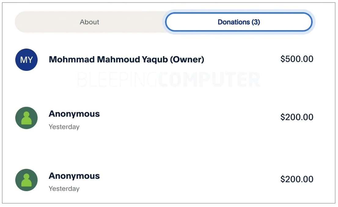 Zaujímavé na tom je, že sám zakladateľ pridal do zbierky vlastných 500 USD. Bežnou praktikou je ukazovanie stránky, na ktorých sa robia zbierky, aj s legitímnym odkazom na PayPal.com.