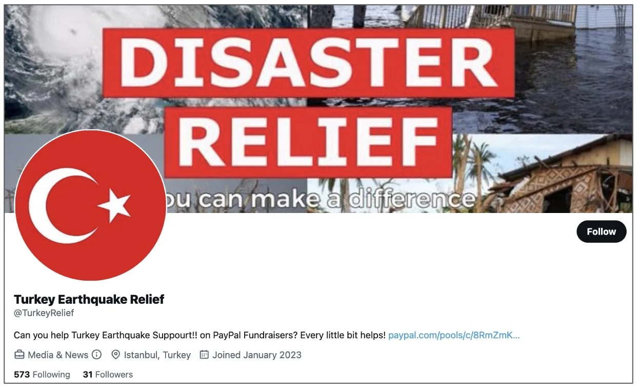 Bolo otázkou času kedy podvodníci zareagujú na zemetrasenie v Turecku a Sýrii. Podľa magazínu Bleeping Computer už majú pripravené falošné zbierky vydávajúce sa za najlepšie úmysly pripravené prijať finančné dary cez PayPal. Zneužitý je aj Twitter. Pozor aj na rôzne kryptomenové účty. Nateraz použite radšej bežné transakcie.