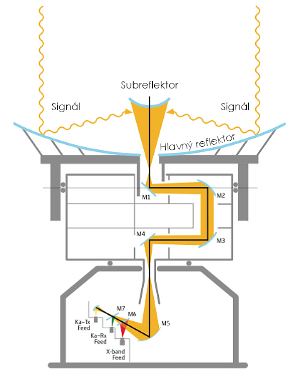 Prakticky všetky antény pre komunikáciu s hlbokým vesmírom fungujú na rovnakom princípe. Používa sa Cassegrain dizajn, kde tanier parabolickej antény sústreďuje signál z veľkej plochy do jedného spoločného bodu, podobne ako keď lupou dokážete nazhromaždiť slnečné svetlo do zapaľujúceho centrálneho bodu.