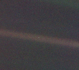 A azda neexistuje lepšie zosmiešnenie celej tej ľudskej domýšľavosti a nesvárov, než je tento vzdialený snímok nášho spoločného maličkého sveta. Jediného domova, ktorý sme kedy mali.