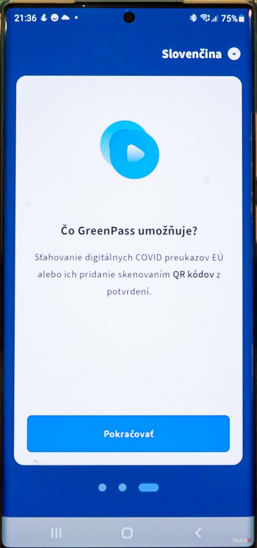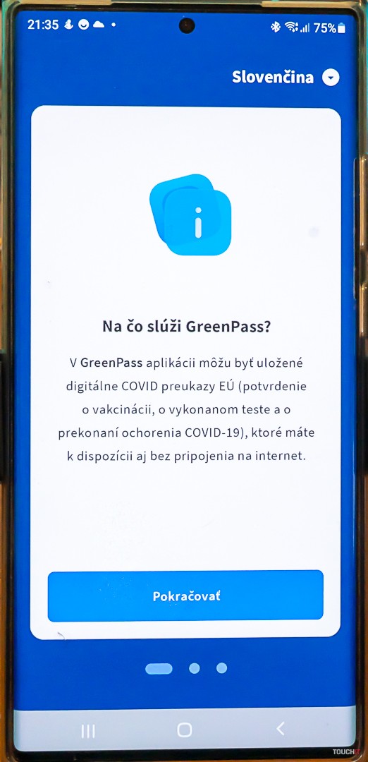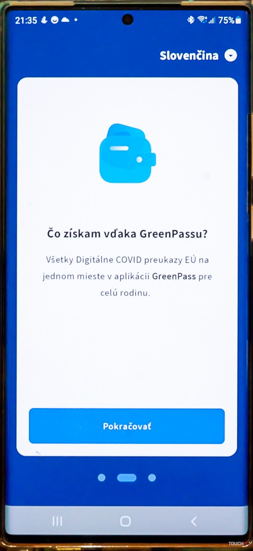 Na tlačovej konferencii na Ministerstve zdravotníctva sa hovorilo, že použitie aplikácie GreenPass od Slovensko IT je jednoduché. Myslíme si, že to úplne triviálne nie je a dostať sa k tomu, aby ste nakoniec mali v mobile QR kód ako tzv. Digitálny COVID preukaz EÚ potrvá tak pol hodinku.