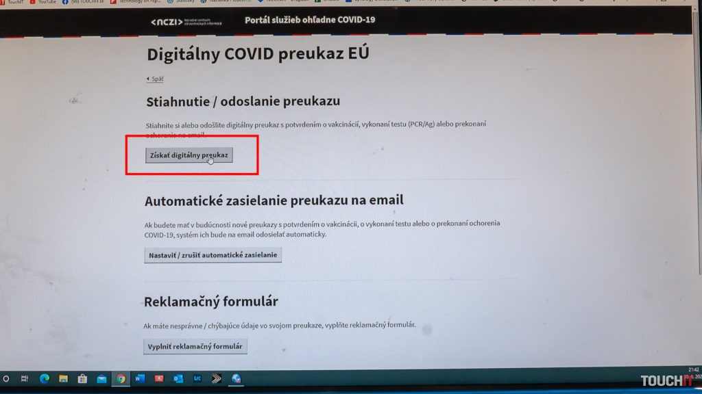 V tejto chvíli bude dobre, ak prejdete na notebook, kde si spustíte stránku korona.gov.sk. Tu pribudla nová položka označená ako Získať Digitálny COVID preukaz EÚ. Pod touto položkou sa skrýva celý strom funkcií.
