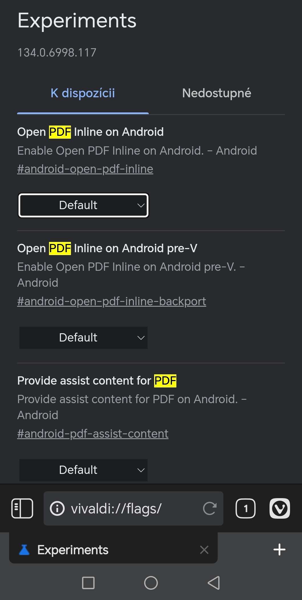 Systémovo ladené alebo experimentálne funkcie bývajú ukryté na tejto konfiguračnej stránke. Rovnako to funguje aj na počítači, avšak tu nepotrebujete nič meniť. PDF dokumenty sa v prehliadači otvárajú bežne.