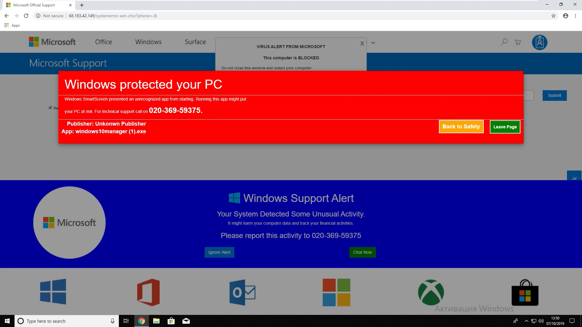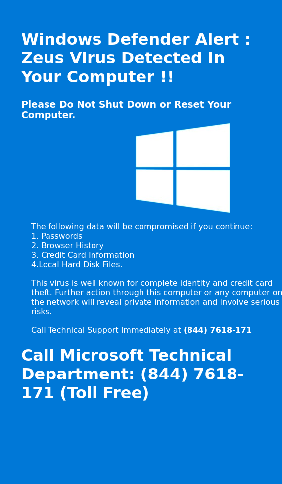 Všetko pravdaže môže prebehnúť aj bez infekcie ako takej. Stačí, aby obeť navštívila nejakú vhodnú stránku, ktorá mu zobrazí fiktívne varovania o tom, že jej počítač bol infikovaný alebo napadnutý a odporučí jej okamžitý kontakt zákazníckej podpory Microsoftu či inej vhodnej firmy, na ktoré zobrazí telefónne číslo, ktoré patrí podvodnému call centru.