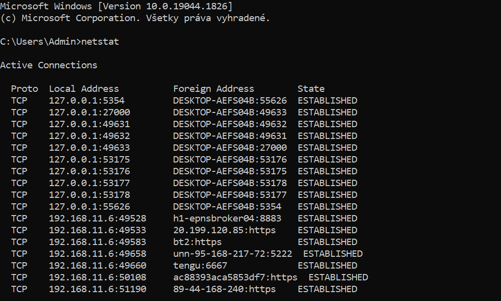 Diagnostická časť obvykle pozostáva z toho, že podvodník spustí Príkazový riadok, kde zadá príkaz Netstat. Ide o klasickú systémovú funkciu, ktorá zobrazí IP adresy aktuálne naviazaných spojení. Používateľ tak vidí, ako jeho počítač kontaktuje rôzne cudzie adresy a podvodník mu vysvetlí, že sú to útočníci, ktorí zneužívajú jeho počítač.