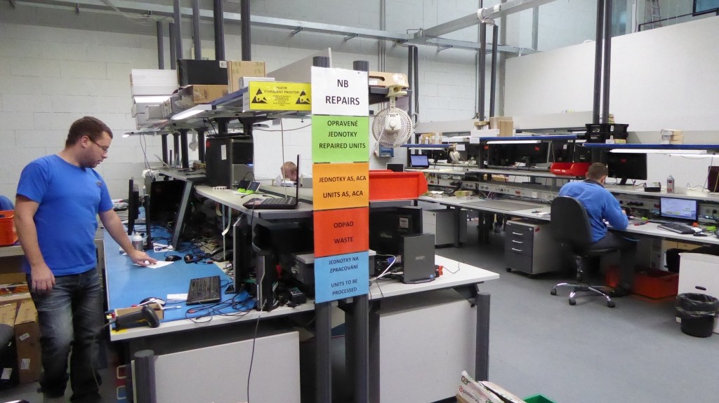 Tým, ako to funguje v takýchto prevádzkach, vás pravdepodobne neprekvapíme. V továrni sú ľudia pri pásoch, ktorí v spolupráci so strojmi vyrábajú dosky a počítače. V servisnom centre riešia každý deň stovky prípadov z celej strednej Európy, pričom okrem opravovania zariadení poskytujú pomoc aj prostredníctvom emailov a telefonicky. Počas našej návštevy sme sa zamerali na podrobnejšie informácie.