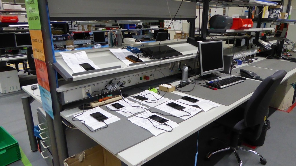 Stôl technika, ktorý rieši reklamácie telefónov. V tomto prípade je niekedy výhodnejšie vyriešiť reklamáciu výmenou kus za kus