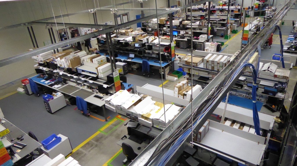 Väčšiu halu tvorí viacero pracovných stolov, ktoré sú špecifické krabicami s produktami a pracovnými zariadeniami, ktoré zamestnanci používajú pri diagnostike a oprave. Nechýba ani funkčný kus daného zariadenia, aby technici v prípade potreby overili správanie prístroja alebo zistili potrebné informácie. Každé pracovisko má na zemi vyznačené farebné zóny. Tie pomáhajú rozdeliť produkty. Zelená plocha značí opravené zariadenia, v modrej sa skladujú neopravené prístroje. Špecifikom je oranžová zóna, ktorá je tzv. „čakacou“. Čaká sa napríklad na chýbajúcu súčiastku alebo vyjadrenie zákazníka.