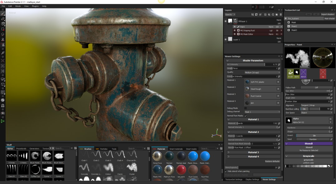 V prípade 2D grafikov sa stretneme hlavne s programami Adobe Photoshop a takisto Substance Designer a Substance Materials (od roku 2019 ich takisto vlastní Adobe), v rámci ktorých vytvárajú komplexné textúry, tiež označované ako materiály, ktoré sa následne aplikujú na jednotlivé modely.