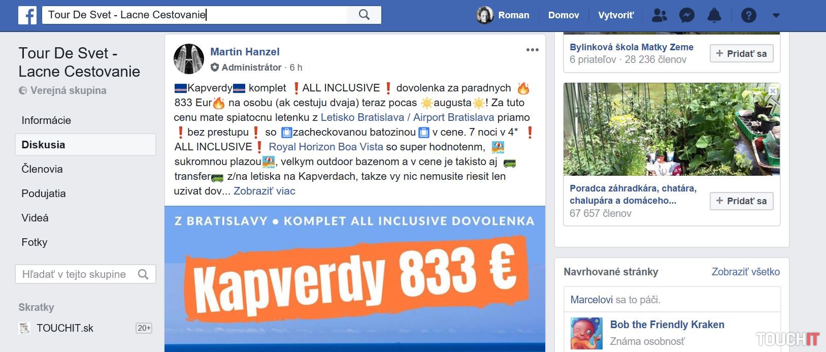 Našťastie, na internete nájdete viacero komunít, ktoré sú určené pre cestovateľov. Veľkej popularite sa napr. teší skupina na Facebooku s názvom Tour De Svet – Lacné Cestovanie, v ktorej jej správca, Martin Hanzel, pravidelne a každý deň zverejňuje atraktívne ceny leteniek alebo celých dovoleniek. A počas leta často zverejňuje aj atraktívne Last Minute ponuky. Táto skupina je preto výborným štartovacím bodom, ak chcete cestovať. Do pozornosti dávame aj Letenky za babku.