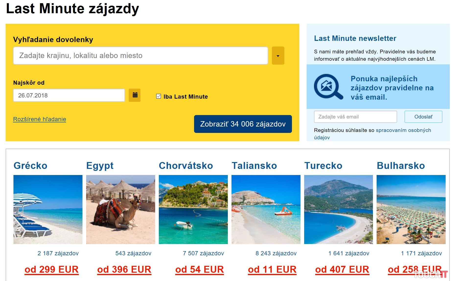 Toto je pravdepodobne najjednoduchšia možnosť. Cestovné kancelárie si uvedomujú silu internetu a väčšina z nich sa stará o to, aby mali prehľadnú a používateľsky atraktívnu internetovú stránku. Do Googlu stačí zadať heslo Last Minute dovolenka a vo výsledkoch vyhľadávania sa vám zobrazia desiatky webových stránok slovenských cestovných kancelárií. Mnohé z nich majú samostatnú podstránku, ktorá je určená iba pre zobrazovanie Last Minute dovoleniek.