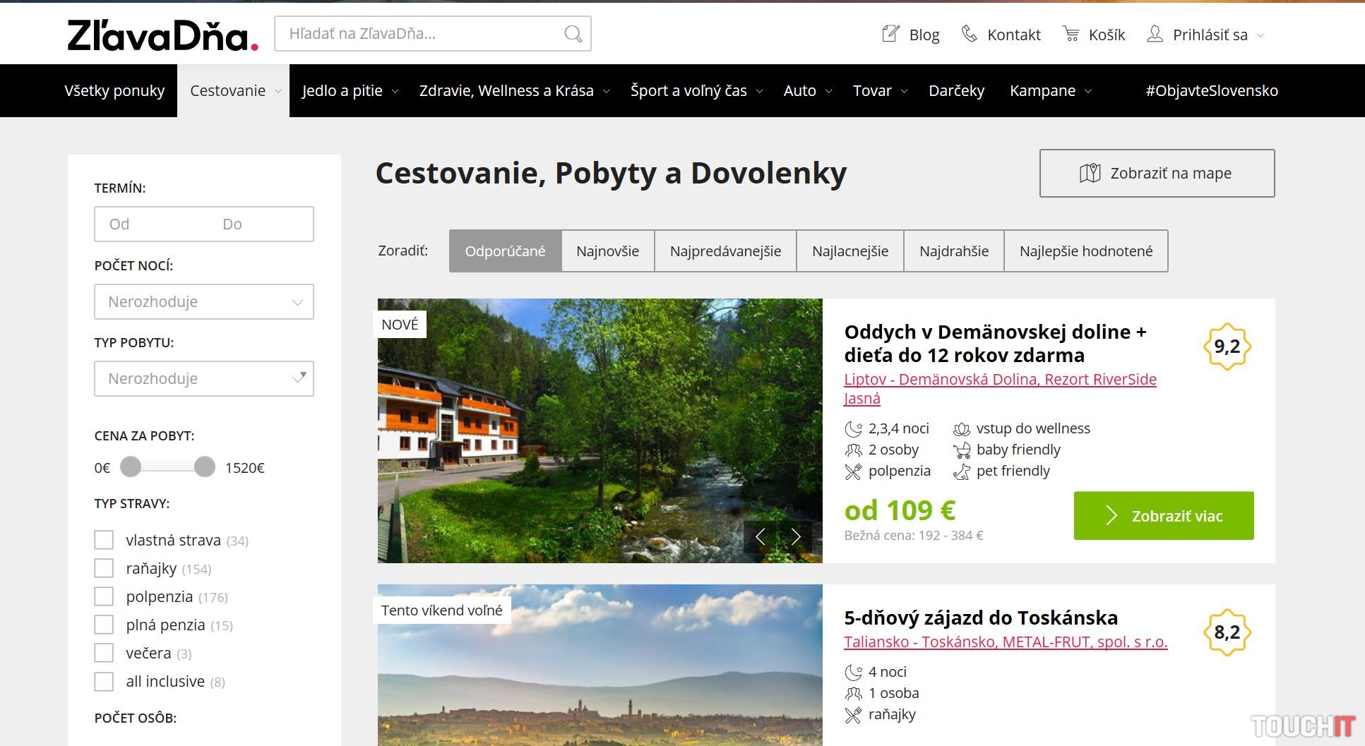 Známe zľavové portály ZlavaDna.sk a Zlavomat.sk ponúkajú sekciu Cestovanie, ku ktorej sa dostanete priamo z hlavnej stránky. V tejto sekcii nájdete zľavy a ponuky, ktoré súvisia s cestovaním. Vzhľadom ku konceptu týchto portálov je nepravdepodobné, že v ponuke nájdete aj Last Minute dovolenky, ale často môžete natrafiť na zájazdy, ktoré sa uskutočnia v blízkej budúcnosti.