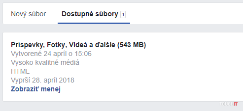 Vaše údaje budú pripravené o niekoľko hodín. My sme na nej museli čakať zhruba 24 hodín. Do emailovej schránky vám príde email s potvrdením, že sú vaše dáta pripravené. Pozor, platnosť majú len 4 dni a treba si ich stiahnuť. Ak to ale nestihnete, pokojne si môžete vytvoriť ďalší balíček vašich dát.
