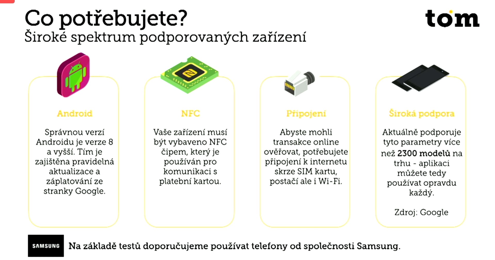 Pre nakupujúcich bude nové to, že zrazu začnú prikladať kartu namiesto k terminálu k telefónu. Ako však vyplýva zo sociologických prieskumov, ak platba prebieha v prostredí, ktoré je vám známe, alebo v situácii, keď sa intuitívne počíta s platbou, nemalo by to spôsobiť pre kupujúceho problém. Telefón samotný pritom neuchováva žiadne citlivé dáta o platbe, a tak nemusíte mať obavy o bezpečnosť či zneužitie údajov o karte. Celé riešenie je navyše plne certifikované a úspešne absolvovalo všetky bezpečnostné certifikácie.