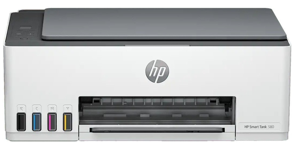 HP Smart Tank 580 – Tankový princíp náplní, podpora Wi-Fi, USB, rozlíšenie 1200 × 1200 dpi pri ČB tlači, 4800 × 1200 dpi pri farebnej tlači. Vhodná na tlač do 3000 strán mesačne.