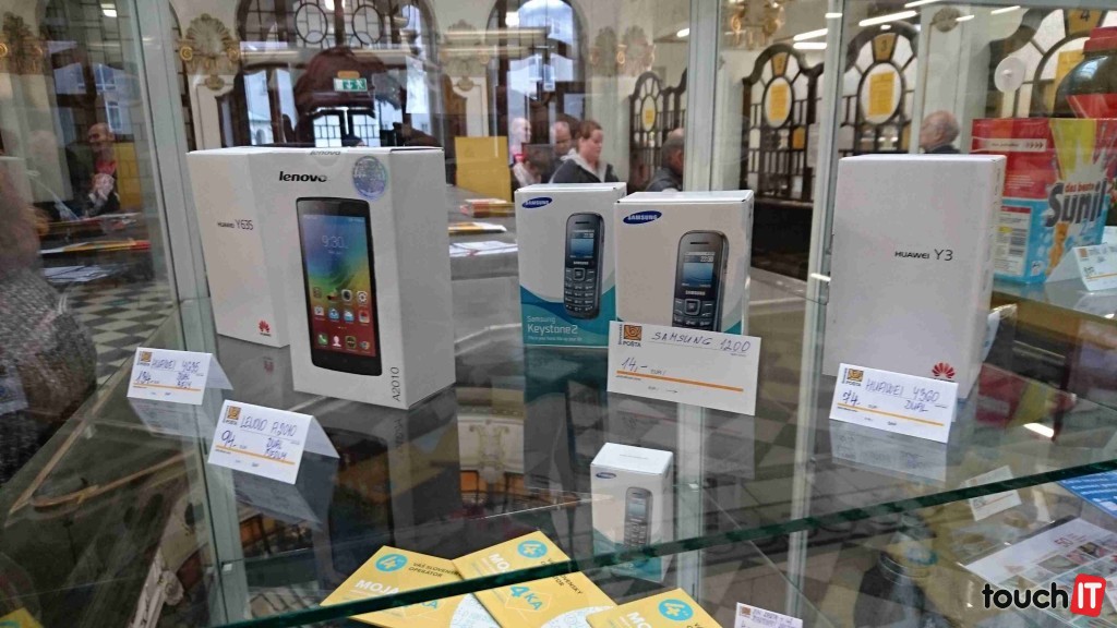 Telefóny sú pekne vystavené vo vitrínke v POSTshope