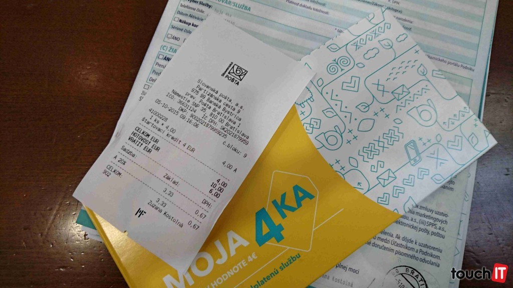 Prešlo 5 minút a mali sme v ruke jeden doklad o nákupe SIM karty a balíček so SIM kartou. Ten je celkom pekný, vyzerá mladistvo a dynamicky. Vo vnútri je štandardná karta so stieracou fóliou a PIN, resp. PUK kódom pre danú kartu.