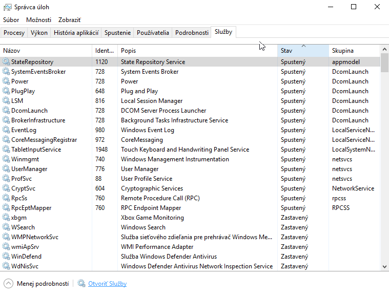 Služby a procesy vyvolané Núdzovým režimom