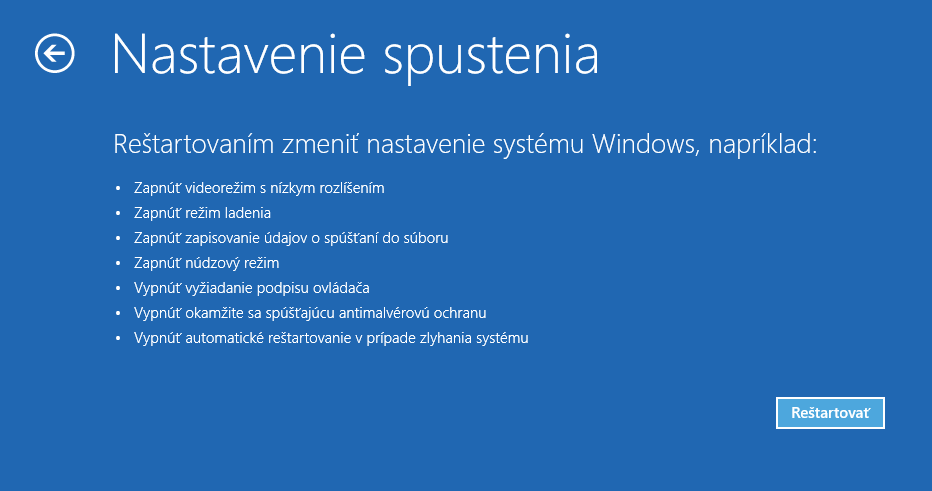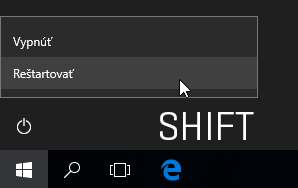 Najrýchlejšou metódou spustenia je stlačenie klávesu SHIFT, pričom pri jeho neprestajnom držaní kliknete na menu Štart a počítač klasickou cestou reštartujte.