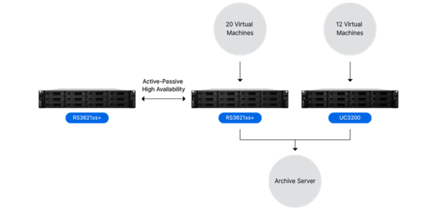 Spoločnosť Gift of Hope implementovala site SAN UC3200 od spoločnosti Synology, ktorá slúži ako úložný uzol pre 12 najdôležitejších virtuálnych počítačov. S UC3200 v konfigurácii active-active sa výrazne znížila pravdepodobnosť dlhšieho výpadku systému pri prepnutí na redundantný hardvér v prípade incident alebo havárie. Organizácia taktiež používa dve ďalšie rackové jednotky Synology v clusteri s vysokou dostupnosťou pre prevádzku ďalších 20 virtuálnych počítačov pre ukladanie svojich menej kritických aplikácií.
