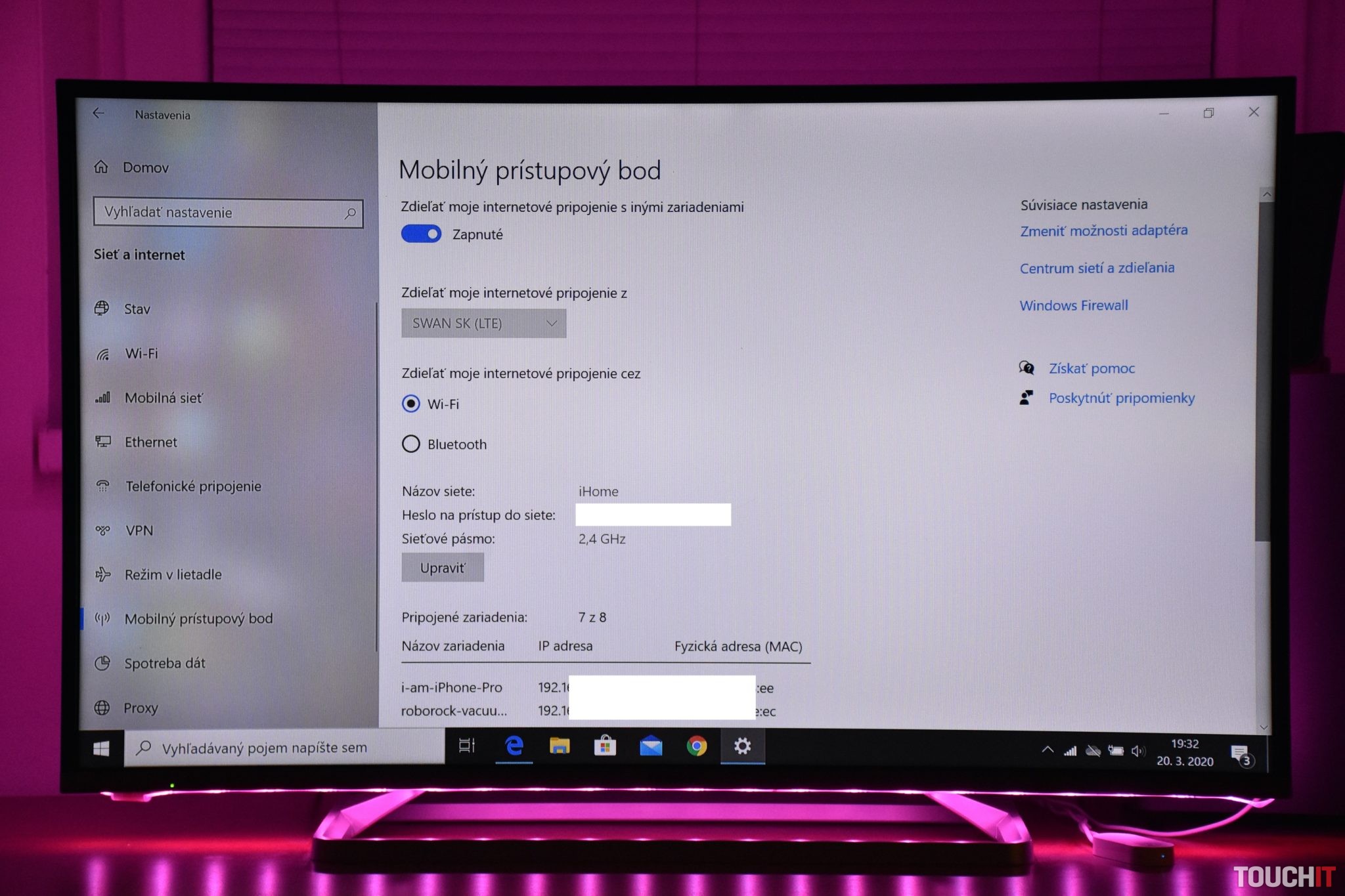 Môže sa však stať, že sa to ihneď nepodarí, pričom treba zmeniť jedno nastavenie v programe Mobile Partner. Vo vrchnej časti programu nájdite sekciu nástroje, kliknete na možnosti a následne správa profilov. Tu je potrebné vytvoriť jednoduchý profil – Názov profilu necháte predvolený (u nás je to SWAN Internet) a do položky prístupový bod napíšete – internet. Následne dáte uložiť a pripojenie by sa malo automaticky spustiť. Mimochodom, tento program poskytuje aj podrobné štatistiky o využití dát, ako aj možnosť čítať a odosielať SMS správy. Takže, ak už máte PC alebo notebook pripojený k internetu za pomoci 3/4G modulu, tak je načase poskytnúť dátové pripojenie aj iným používateľom alebo zariadeniam. Aplikáciu Mobile Partner môžete schovať (nie zavrieť, lebo sa vypne dátové pripojenie), pričom prejdete do nastavení OS Windows, kde zvolíte položku Sieť/internet a následne mobilný prístupový bod. V tejto sekcii ho stačí jednoducho zapnúť a nastaviť pár detailov. Zvoľte zdieľanie internetového pripojenia prostredníctvom Wi-Fi a nastavte názov siete (SSID) + heslo na prístup do tejto siete. Nastaviť si môžete aj to, či bude sieťové pásmo v režime 2,4 GHz, 5 GHz alebo automaticky, podľa potreby. Úplne dole odporúčame vypnúť položku úspora energie, ktorá by mobilný prístupový bod automaticky vypla – ak by nebolo pripojené žiadne zariadenie, pričom by ste ho museli opäť zapínať. Ak ste postupovali podľa nášho návodu, tak v tejto chvíli máte dostupnú vlastnú Wi-Fi sieť, ktorú ste vytvorili za pomoci SIM karty s mobilným internetom, 3/4G USB modulu a PC s operačným systémom Windows (10). Áno, sú aj obmedzenia – na takto vytvorenú Wi-Fi sieť sa môžu pripojiť max. ôsmi používatelia, resp. zariadenia. Prečítajte si aj: https://staging.touchit.sk/ako-sa-nenechat-sledovat-cez-webovu-kameru-vo-windows-10/282029Podobné články