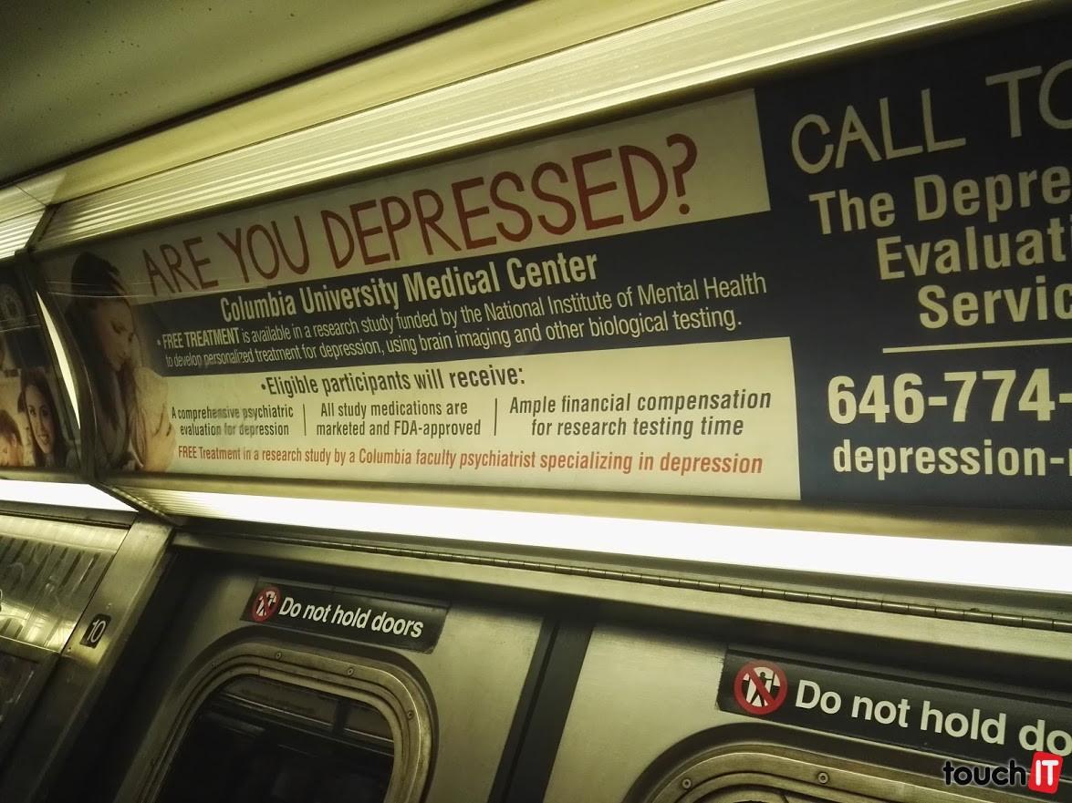 Aj takéto reklamy majú v metre. Jedna cesta stojí 3 doláre. Kúpou dopravnej karty môžete ušetriť (Fotené s Huawei P8)