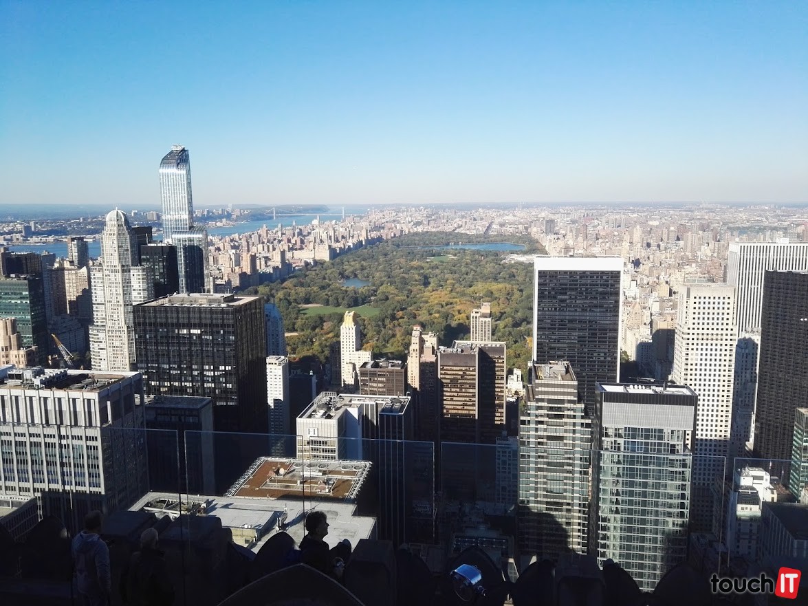 Vyhliadka Top of the Rock počas dňa. Zaujme najmä pohľadom na Central Park (Fotené s Huawei P8)