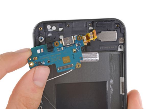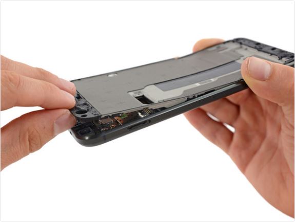 Prvým krokom, s ktorým „borci“ z IFIXIT začali, je odobratie LCD displeja. Ten je z pohľadu našich skúseností dobre riešený a prípadná výmena bude s dávkou opatrnosti bezproblémová. Avšak, napr. Apple iPhone má zo servisného hľadiska stále navrch. (Špecifikácia: 5.5″ AMOLED displej / QHD – 1440 x 2560 Px (534 ppi) / 2.5D Gorilla Glass 4)