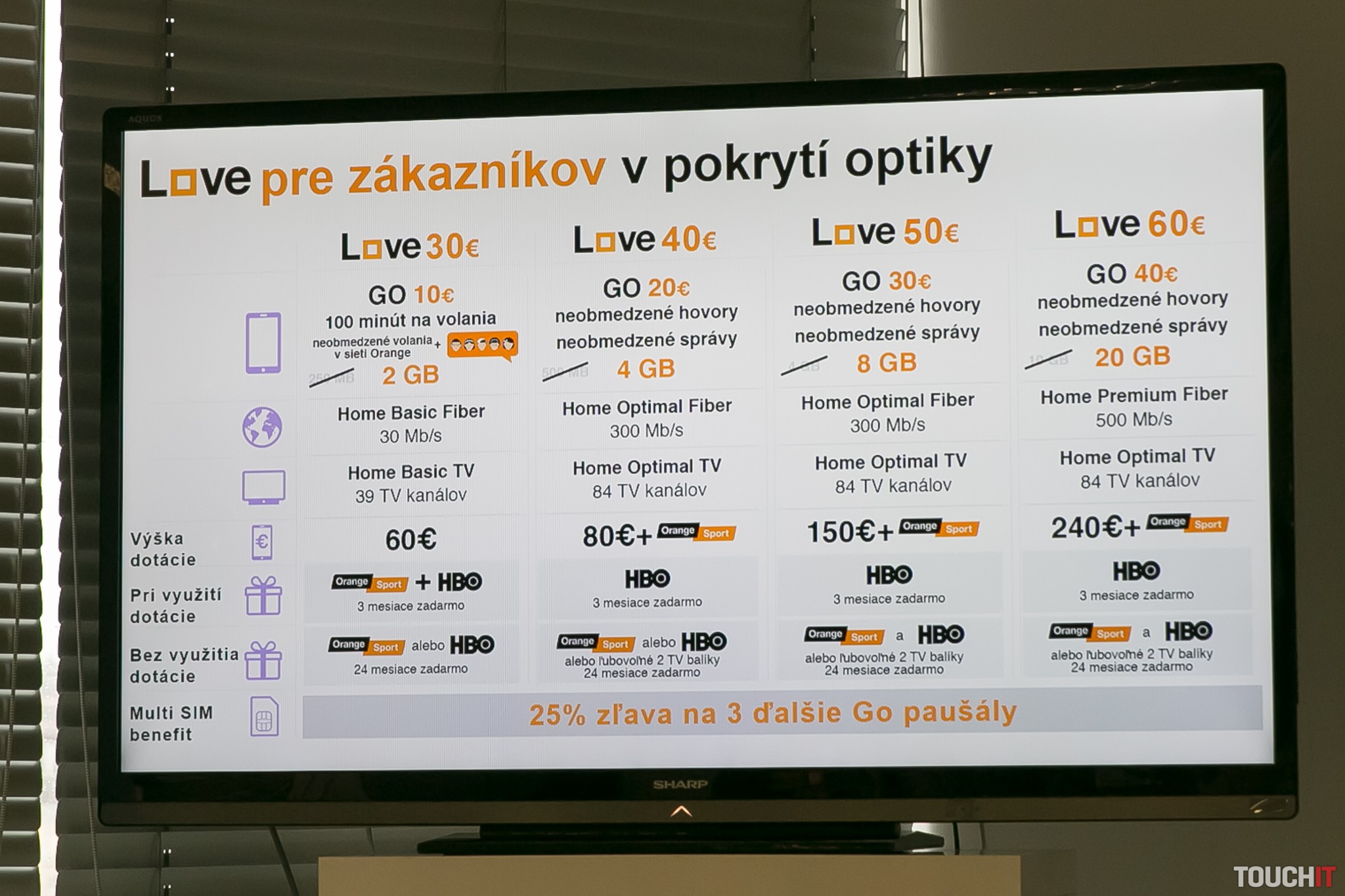 Love balíky budú dostupné na takmer celom Slovensku, netýkajú sa už len tých zákazníkov, ktorí majú optické pripojenie. Pripomeňme, že balíky Love sú konvergentnou ponukou a predstavujú kombináciu hlasového paušálu Go, pevného internetu a digitálnej televízie. Balíky v hodnote 30, 40, 50 a 60 Eur teraz budú dostupné pre zákazníkov, ktorí majú satelitné alebo fixné pripojenie na sieť Orange.