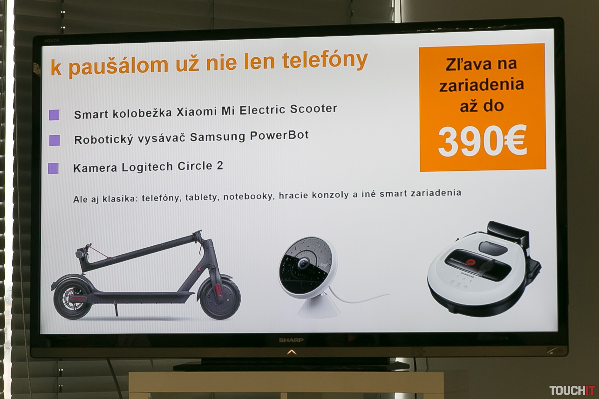 V tomto roku Orange obohatil svoju ponuku o Smart kolobežku od Xiaomi, je tu aj robotický vysávač Samsung PowerBot a kamera Logitech Circle 2. Zľava na tieto zariadenia je do výšky 390 eur pre zákazníkov, ktorí si zoberú alebo predĺžia paušál alebo Love balík. Všetky doterajšie zariadenia ostávajú naďalej v platnosti.