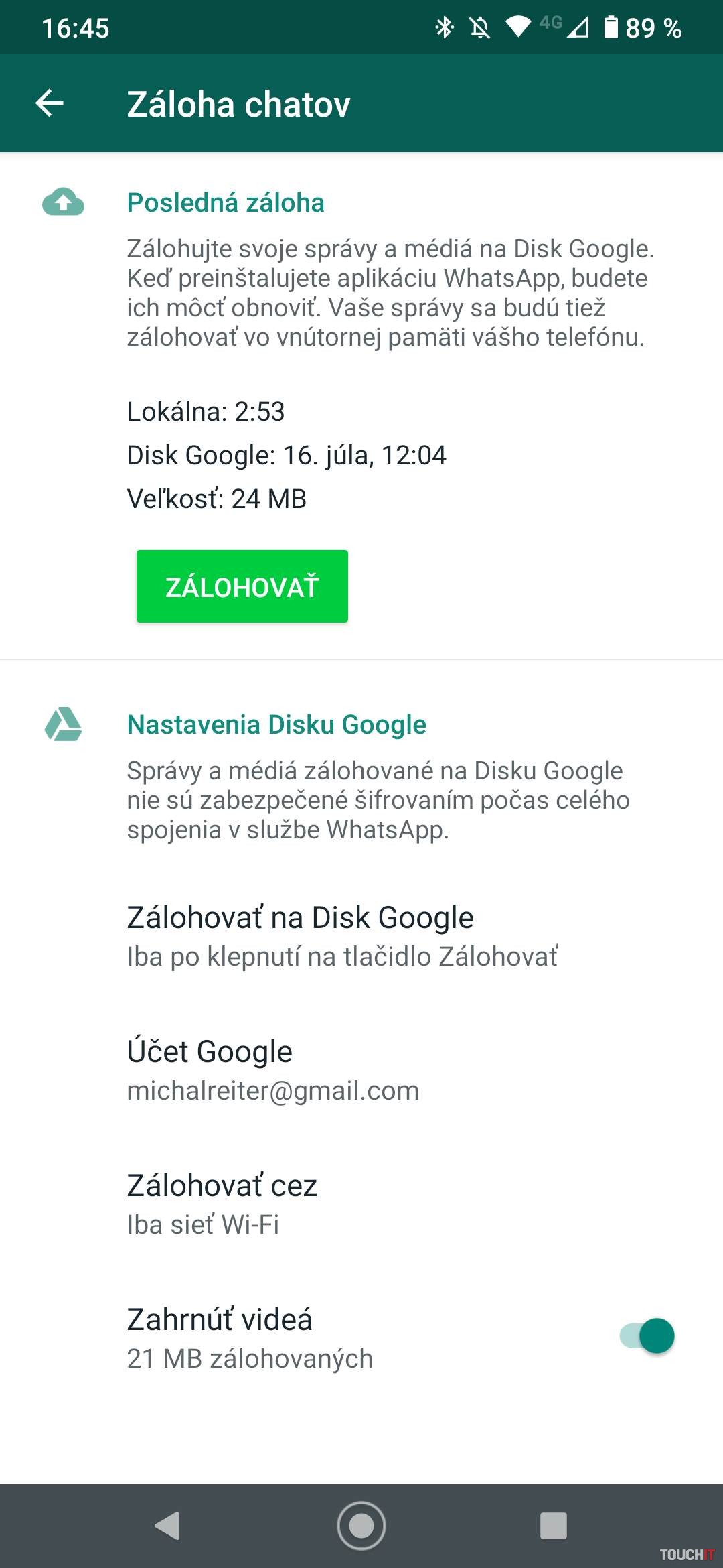Zálohovanie býva predvolene ako automatické, no ak ho raz zmeníte, potom ho už nemusíte mať vykonané automaticky. Upozorníme vás aj na problém, ktorý môže nastať. Zálohovanie správ ako aj fotografií aj videa nájdete v menu programu.