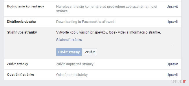 Na zálohovanie vášho funpage, ktorý spravujete ako osoba a ste tu administrátorom, sa stačí prepnúť do jeho zobrazenia. Teda aby ste videli hlavnú stránku. Tu nájdete tlačidlo Nastavenia a v spodnej časti položku Stiahnutie stránky.