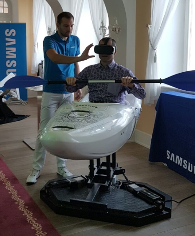 Vďaka spojeniu virtuálnej reality a nápadu od spoločnosti Samsung, si môžete na konferencii aj zašportovať.