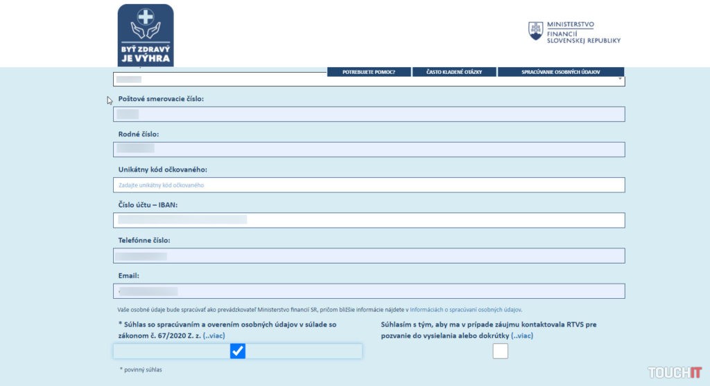 Znamená to, že odmenu získate, ak nahovoríte niekoho na to, aby sa dal zaočkovať a predtým zaočkovaný nebol. Musíte mať vek nad 18 rokov a byť občanom Slovenskej republiky. Pri registrácii na stráne ww.bytzdravyjevyhra.sk zadávate okrem svojich kontaktných údajov ako je meno, priezvisko, mail a telefónne číslo aj číslo účtu v IBAN forme, na ktorý bude zaslaná prípadná odmena. Podstatný je však unikátny kód očkovaného. Zároveň vyjadrujete súhlas so spracovaním osobných údajov Ministerstvom financií a tiež dobrovoľný súhlas s účinkovaním v RTVS.
