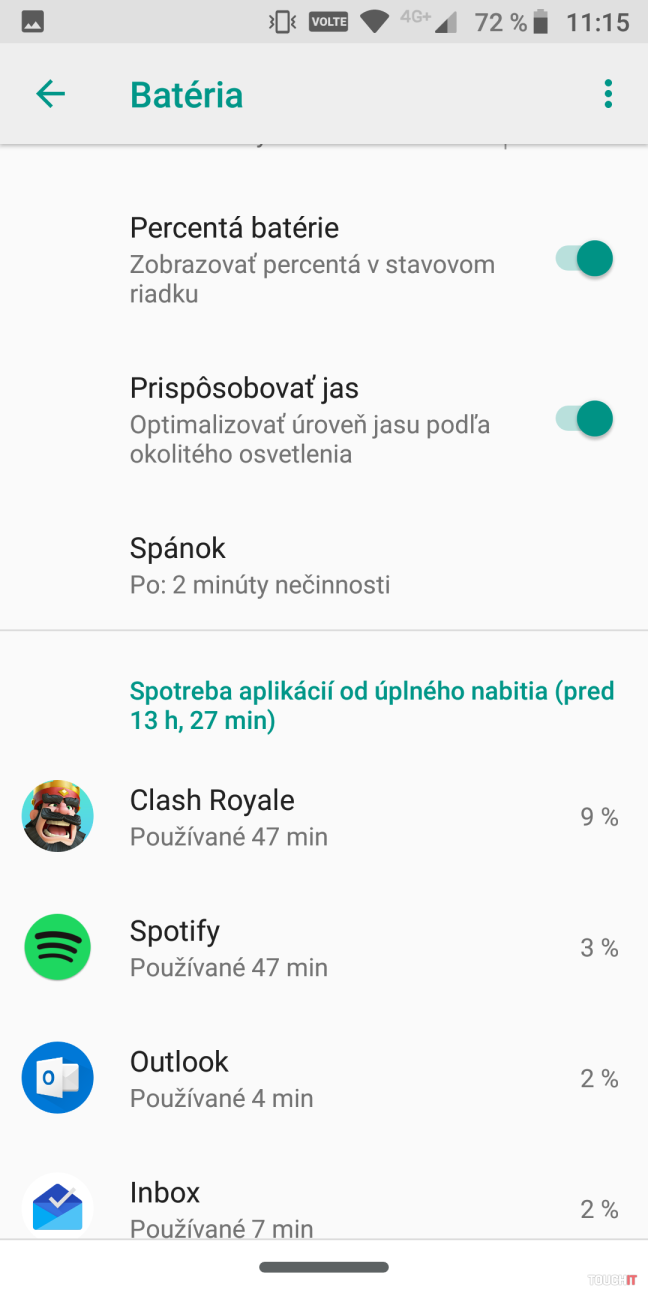 - Jas displeja – ďalšia silná zbraň proti výdrží batérie. Nastavte si adaptívny jas podľa okolitého osvetlenia v časti Nastavenia – Batéria – Prispôsobovať jas.