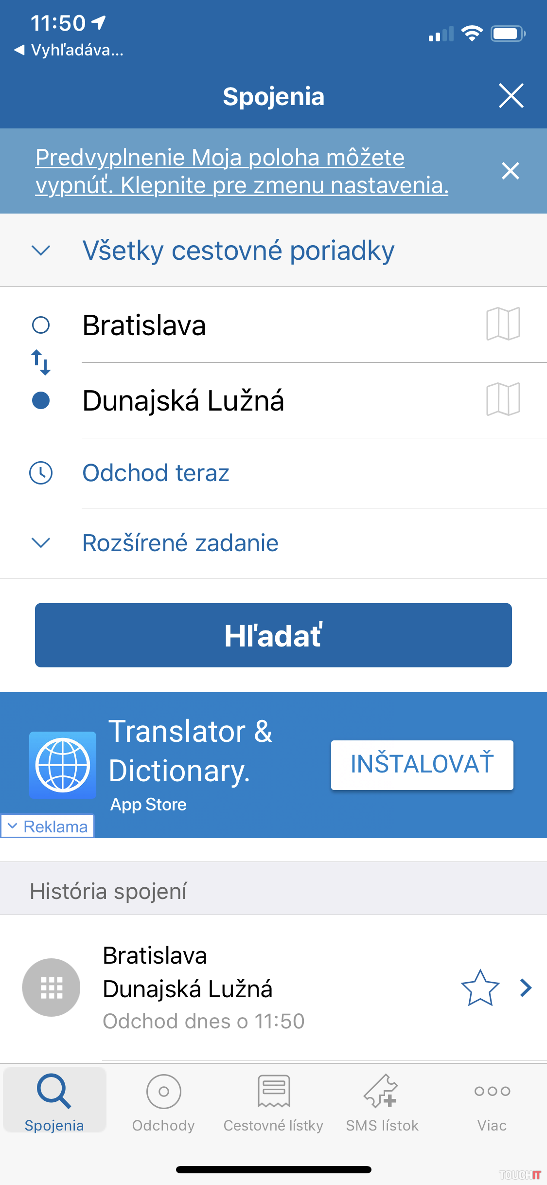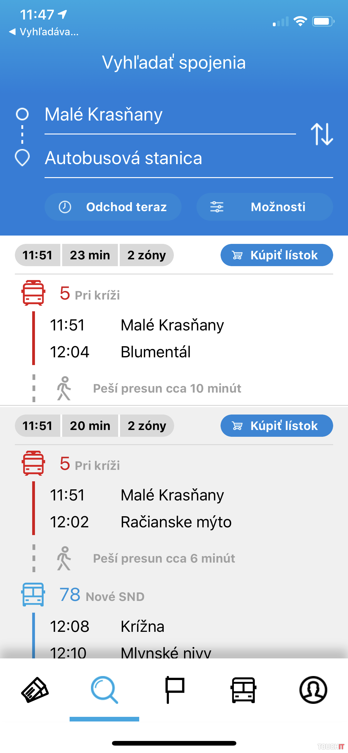 Oprášte aplikáciu cestovné poriadky (CP.sk) alebo CG Transit Aplikácia CP.sk vám ponúkne detailné informácie o autobusových a vlakových spojoch v rámci celého Slovenska. Môžete vyhľadávať na základe vašej aktuálnej polohy (odchod Z) alebo si celé zadanie spoja z bodu A do bod B zadať manuálne. Ide o veľmi jednoduchý proces, pričom získate o daných spojoch detailné informácie, vrátane toho, na akej zastávke a v aký čas bude daný autobus/vlak stáť. Okrem toho tu nájdete aj predpripravené SMS lístky pre rôzne mestá a ich zóny. Na vami vybraný lístok stačí kliknúť, pričom budete presmerovaní do aplikácie správy, kde iba potvrdíte odoslanie SMS, na základe ktorej vám obratom príde SMS lístok. Aplikácia CP.sk je zdarma a dostupná pre iOS a Android zariadenia.