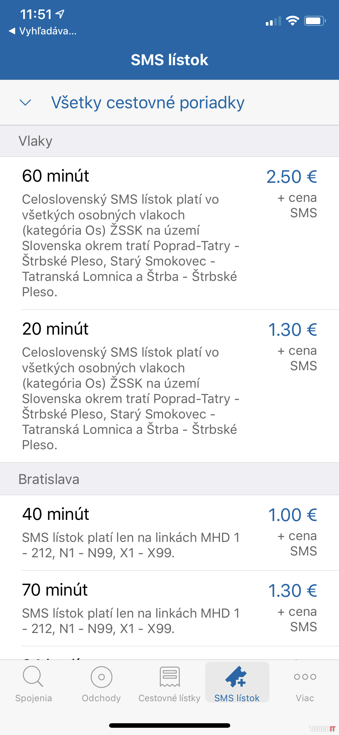 Podobné, možno ešte prehľadnejšie/rozsiahlejšie informácie a možnosti ponúka aplikácia CG Transit, ktorá je na skúšobnú dobu (2 týždne) zadarmo (dostupná pre iOS a Android) a následne je potrebné uhradiť ročný poplatok od 3 do 4,5 eura v závislosti od operačného systému. Ide však o minimálnu sumu oproti tomu, aký komfort vám táto aplikácia ponúkne. Máte tu podrobný prehľad o všetkých spojoch (nie len na Slovensku), jednoduché vyhľadávanie trasy, podrobné zobrazenie jednotlivých zastávok, vrátane vykreslenia trasy na mape. Výhodou sú upozornenia/notifikácie na naplánované spoje, ako aj online upozornenia na meškanie vlakov a pod. Výborná a prehľadná aplikácia, ktorá je plná pokročilých funkcií a nechýbajú ani predpripravené SMS lístky. Odporúčame vyskúšať, cestovanie sa vám podstatne zjednoduší.
